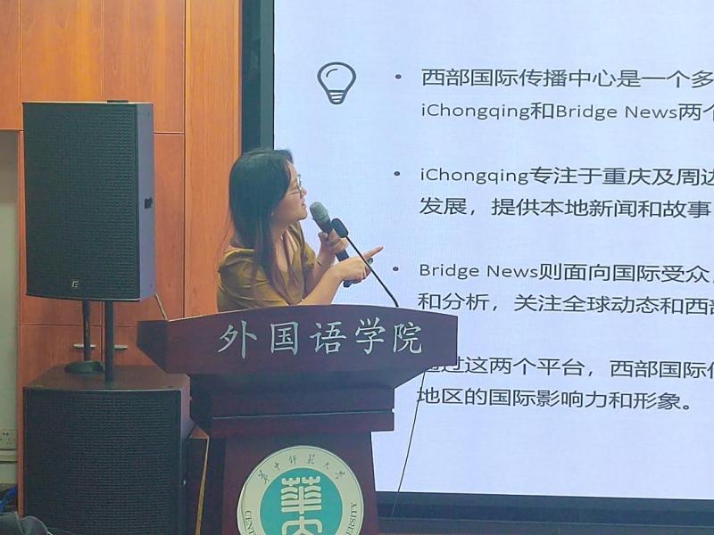 2021级翻译专业本科生綦小芳带来了重庆西部国际传播中心的实习心得,她强调了搜索筛选能力的重要性,并分享了如何利用英语技能拓展其他领域知识。
