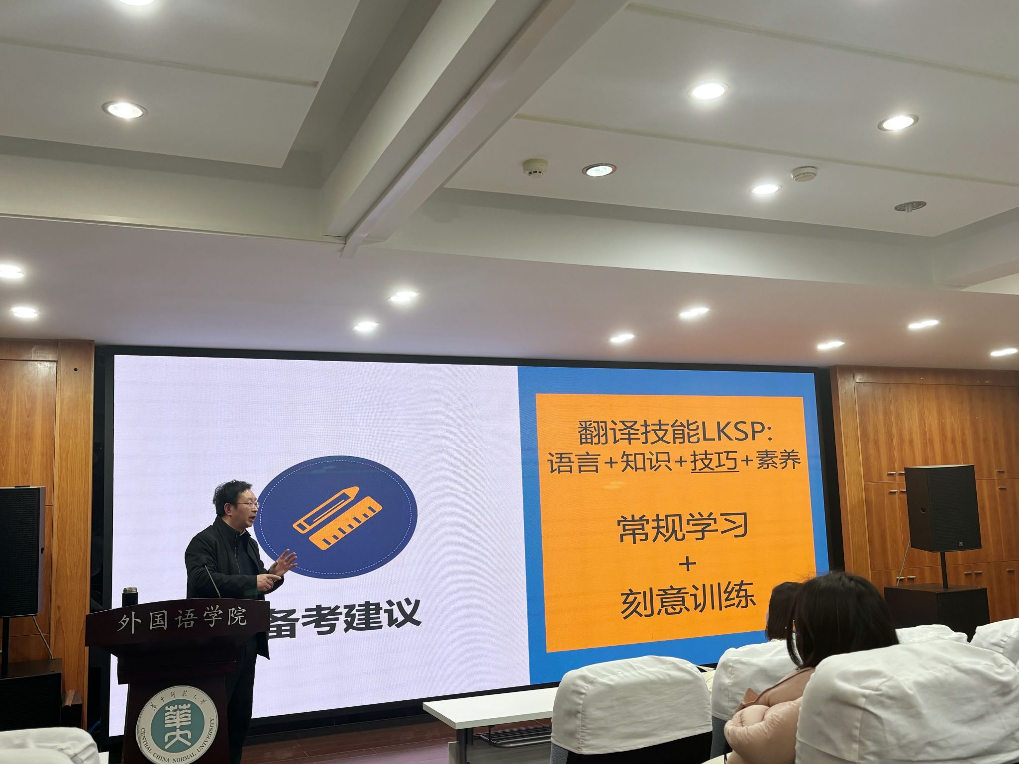 讲座伊始,黄敏老师分析了近年来CATTI考试通过率低迷的原因。他认为,这一方面与考试的时间安排、评分标准等因素有关,另一方面,与考生备考过程中缺乏系统规划、对CATTI考试的评分标准不够了解,导致备考过程中事倍功半也有关。他特别提到,许多考生在备考时时间管理不当,动机不专一,且对CATTI评分标准缺乏清晰认识,这些因素都极大影响了考试的通过率。
