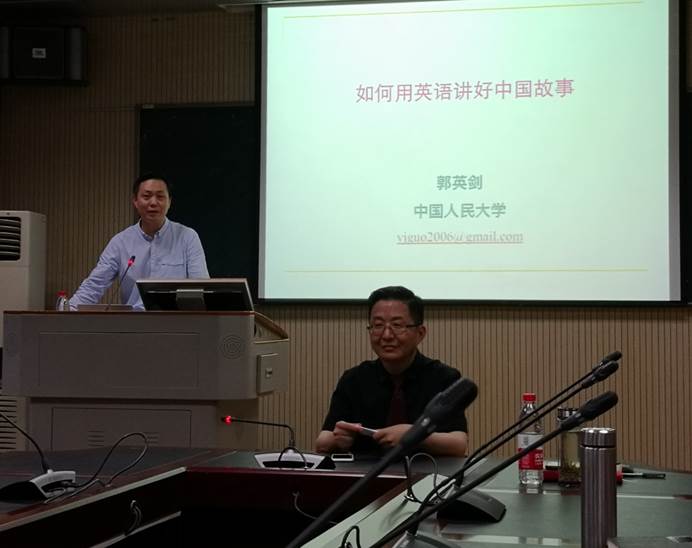 2018年5月9日晚上,中国人民大学郭英剑教授应邀做客外国语学院,并为我院师生做了一场题为“如何用英语讲好中国故事”的讲座。