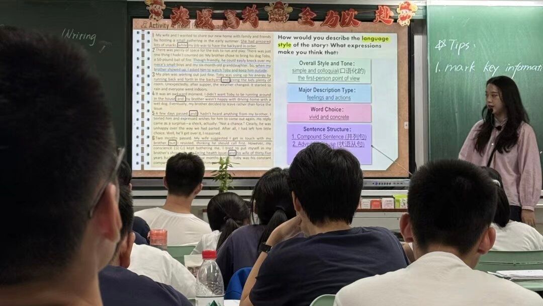 学习一段时间后,在各自指导老师的带领下和多次磨课之后,实习学生陆续走上讲台进行实际授课,收获满满。实习生贺佳欣对指导老师的积极帮助和鼓励表示感谢,她感慨道:“正式站上讲台是我从理论迈向实践的关键一步。我将带着这份宝贵的经验,继续在英语教学的道路上探索前行。”