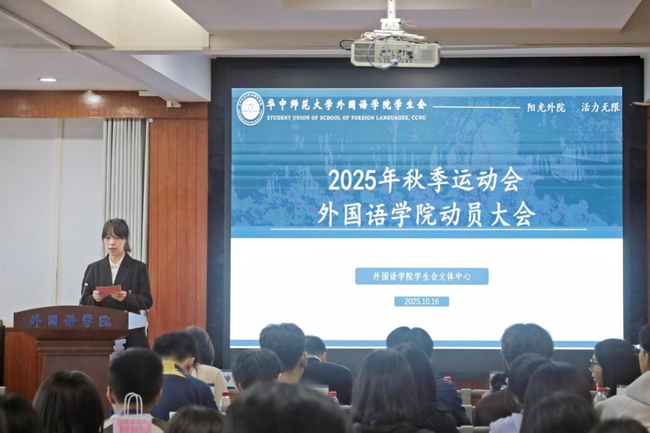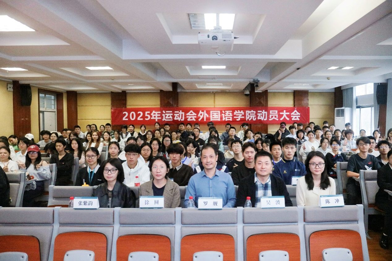 为进一步激发同学们运动热情,引导同学们更好备赛学校运动会。10月16日,外国语学院召开2025年运动会外国语学院动员大会。外国语学院党委副书记罗舰,团委书记吴波,团委副书记徐圆,辅导员张紫韵、陈冲,特邀教练体育学院李宗罡、吴林朋、张天祥、王彬彬 、姜熙鸣等嘉宾出席,文体中心成员及全体运动员参加本次动员大会。文体中心负责人王可颖主持会议。