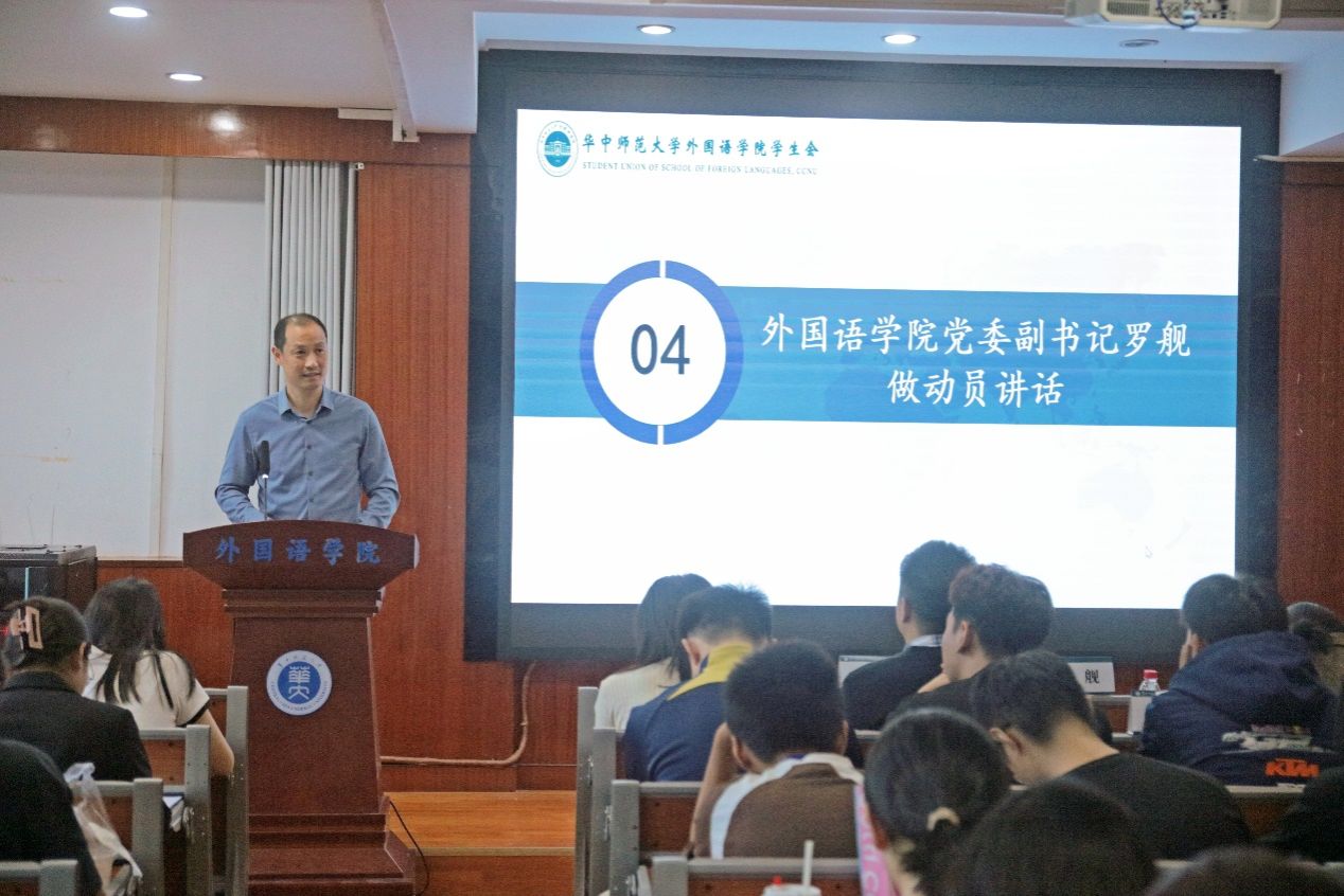 学院党委副书记罗舰做动员讲话。他对全体运动员及保障人员提出三点要求:一是科学训练,安全第一,运动员们应坚持系统训练,遵循教练科学指导;二是传承精神,展现风采,弘扬“阳光外院,活力无限”的精神风貌,在赛场上勇创佳绩;三是团结协作,做好保障,全体成员共筑赛事保障体系,为运动员保驾护航。他结合自身经验鼓励同学们主动参与运动、深耕体育爱好,在赛场中勇于挑战自我,以最佳状态赛出水平、赛出风采,在即将到来的运动会中体现外院学子的优良作风。