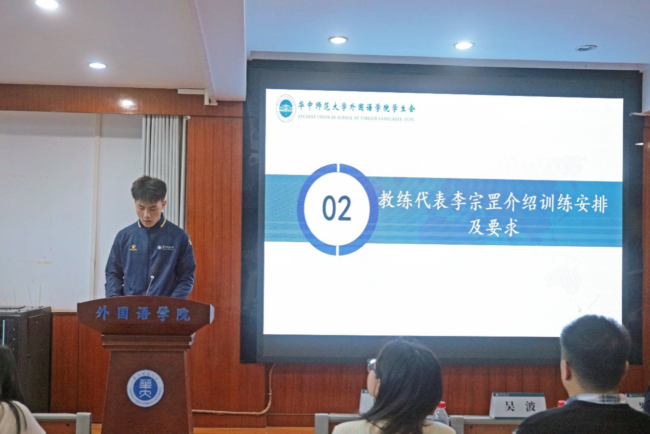 教练代表李宗罡首先感谢外院师生对教练团队的信任与支持,接着点赞了外院同学们参加体育活动的热情,介绍了整体训练计划,并提出“纪律为先,安全第一,主动沟通”三项训练提醒。他表示将以专业指导全力支持运动员备战,助力大家为学院争光。