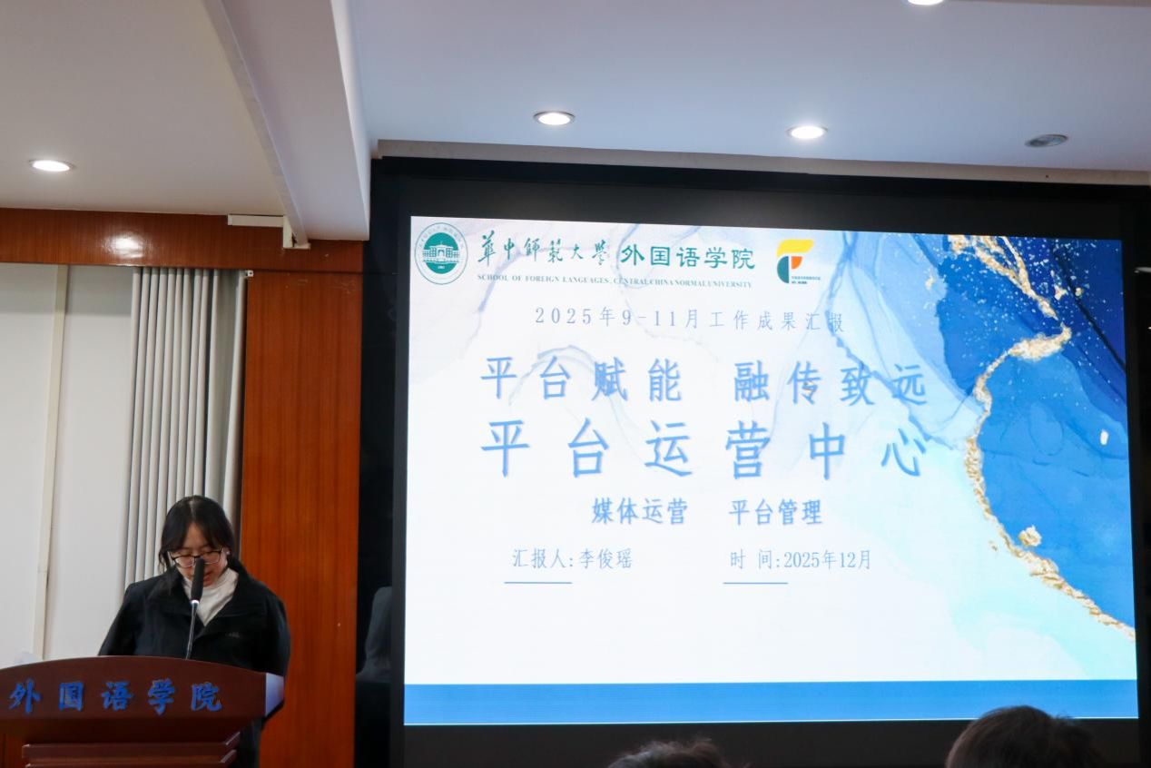 在汇报环节,各部门负责人依次汇报近期工作成果。中心办公室以“服务为先”,圆满完成多项任务,为中心高效运转筑牢根基;数字文化华体会(中国)深耕原创内容,推进多个重点项目,从文创产出,海报设计等多方面输出,用视觉语言传递外院风采;平台运营中心以新颖排版与优质内容实现阅读量、分享率显著提升;新闻中心完成各项拍摄与新闻稿任务,持续提供优质影像及文稿支持,为宣传报道提供了坚实支撑。各部门各司其职、协同联动,充分展现了语思融媒体中心的蓬勃活力与专业素养。