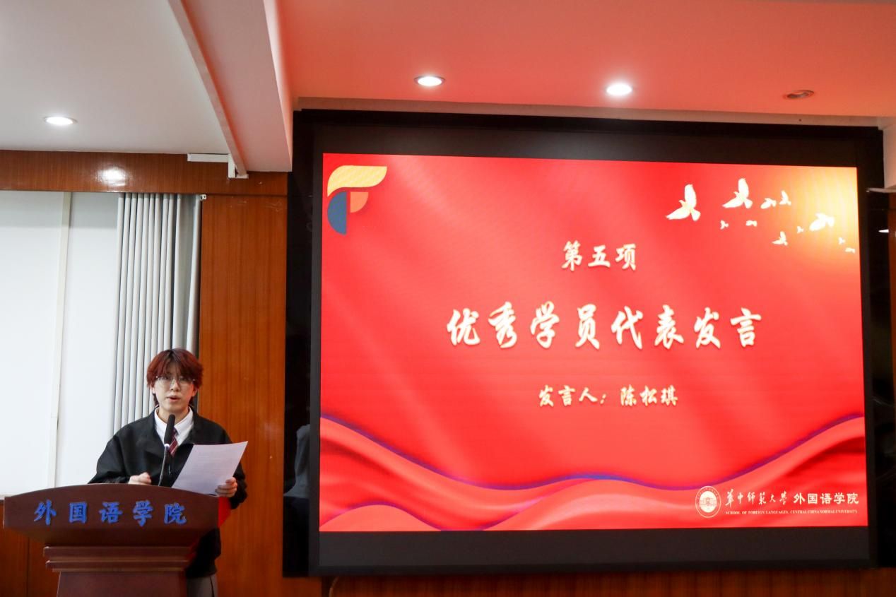仪式还表彰了优秀学员及单项奖获得者,肖志刚与徐圆分别为获奖成员颁发荣誉证书及定制文创奖品。新闻中心影像艺术部陈松琪作为优秀学员代表分享在融媒体中心的成长感悟,她表示将继续以镜头为媒,记录校园点滴,展现新时代外院学子的融媒担当与青春力量。
