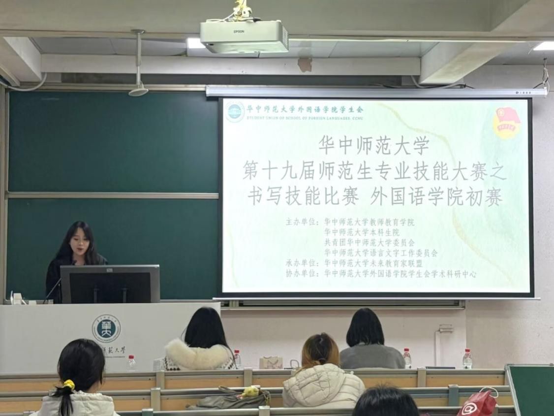 3月25日,华体会官方版网站登录入口“第十九届师范生专业技能大赛”书写技能比赛粉笔字初赛于3218教室举办。本次比赛由华中师范大学教师教育学院、本科生院、语言文字工作委员会和共青团华中师范大学委员会主办,未来教育家联盟承办,华体会官方版网站登录入口学生会学术科研部协办。师范生书写能力训练指导团成员赖莉雅、赵乙鑫、石嘉欣担任评委。外院主持队队员李芊慧担任主持。